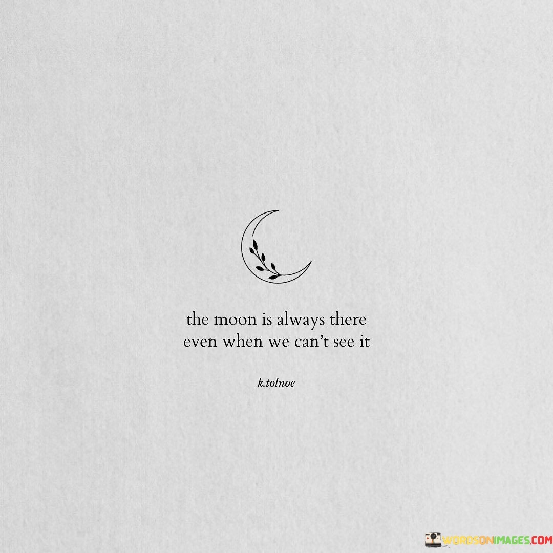 The moon's presence, even when hidden from view, serves as a symbol of consistency and reliability. Similarly, in our lives, people who care for us and provide support may not always be physically present, but their love and support persist in the background. This quote encourages us to have faith in the enduring nature of such connections and to trust that they remain intact even during moments of apparent absence.