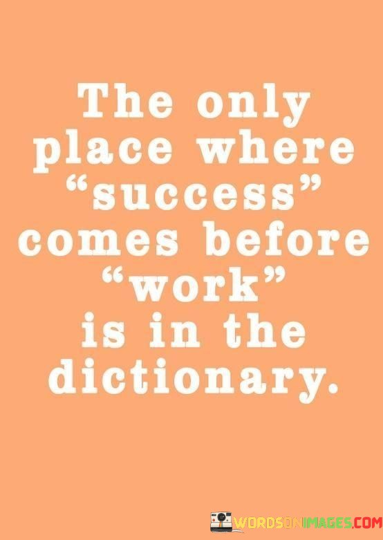 By juxtaposing "success" and "work," the quote highlights that in all aspects of life, including personal and professional endeavors, putting in consistent and focused effort is essential. The quote also subtly reminds us that any apparent shortcuts or instances where success appears to come before work are often exceptions, not the rule.