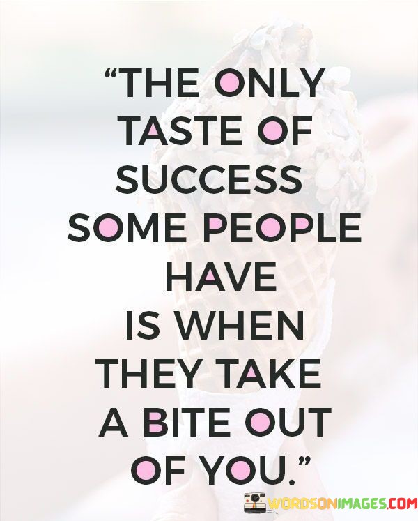 The only taste of success some people have" suggests that for certain individuals, their concept of success is solely related to personal gain or triumph, often at the expense of others.