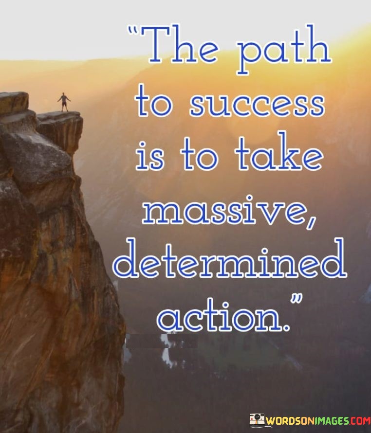 The statement "The Path to Success Is to Take Massive Determined Action" emphasizes the significance of resolute and proactive steps in achieving success.