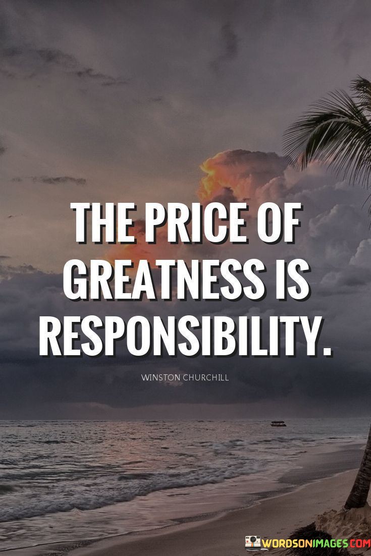 This quote underscores the connection between greatness and accountability. It means that achieving remarkable success demands a commitment to taking responsibility for one's actions and their impact. Greatness comes with a duty to use influence wisely and consider the consequences of decisions.