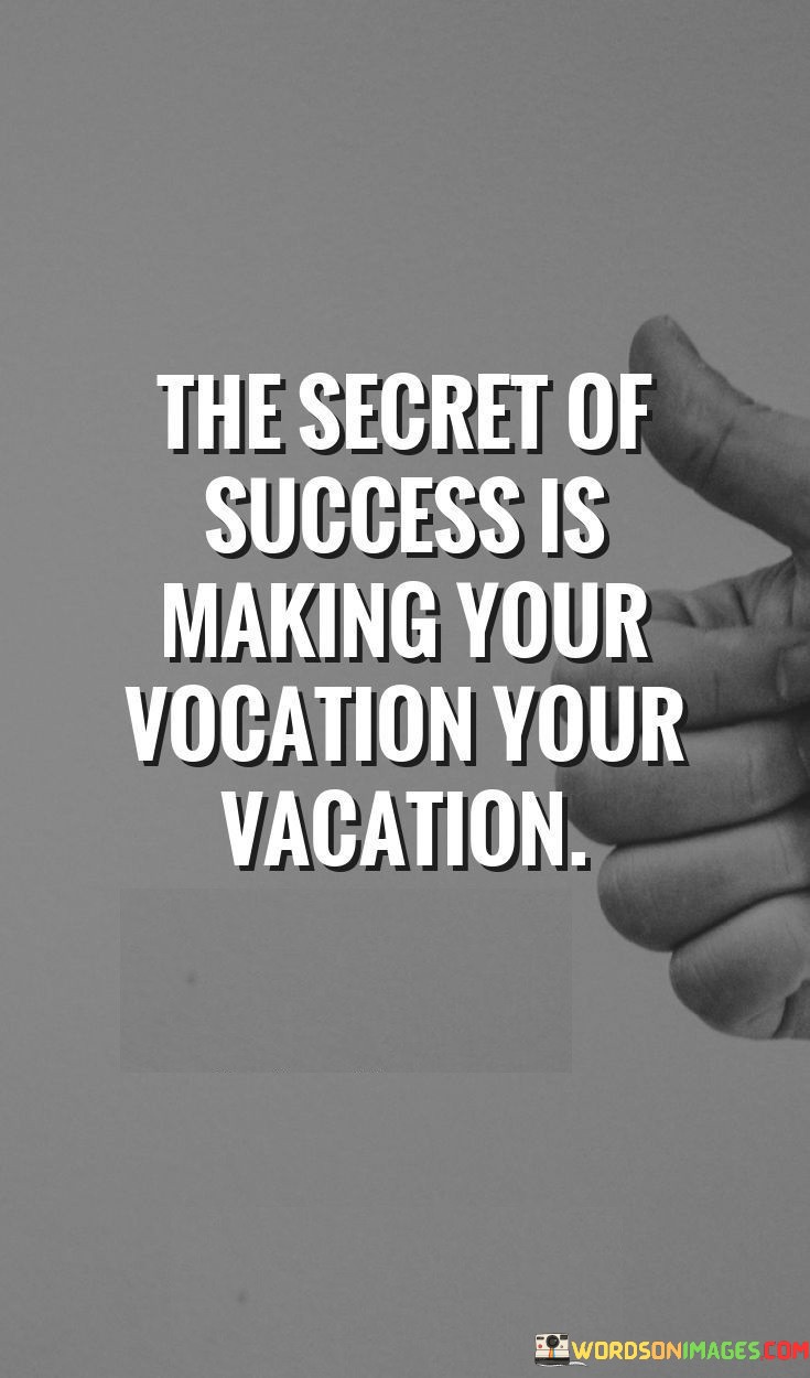 The statement "The Secret of Success Is Making Your Vocation Your Vacation" highlights the idea that achieving true success involves aligning one's professional pursuits with their passions and enjoying the journey.