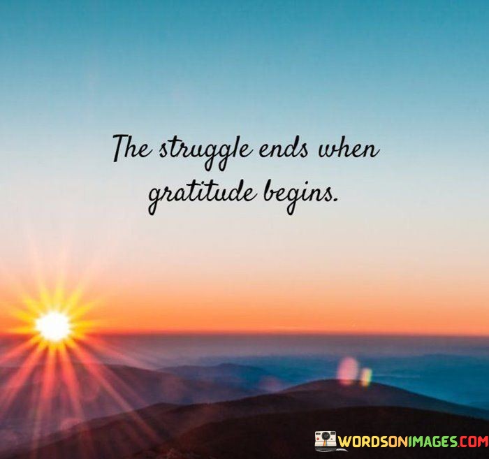 In essence, the quote signifies that embracing gratitude has the power to transform our perspective and alleviate struggles. It suggests that cultivating a sense of gratitude can lead to a shift in focus from what is lacking to what is present, ultimately bringing about a sense of contentment and peace.