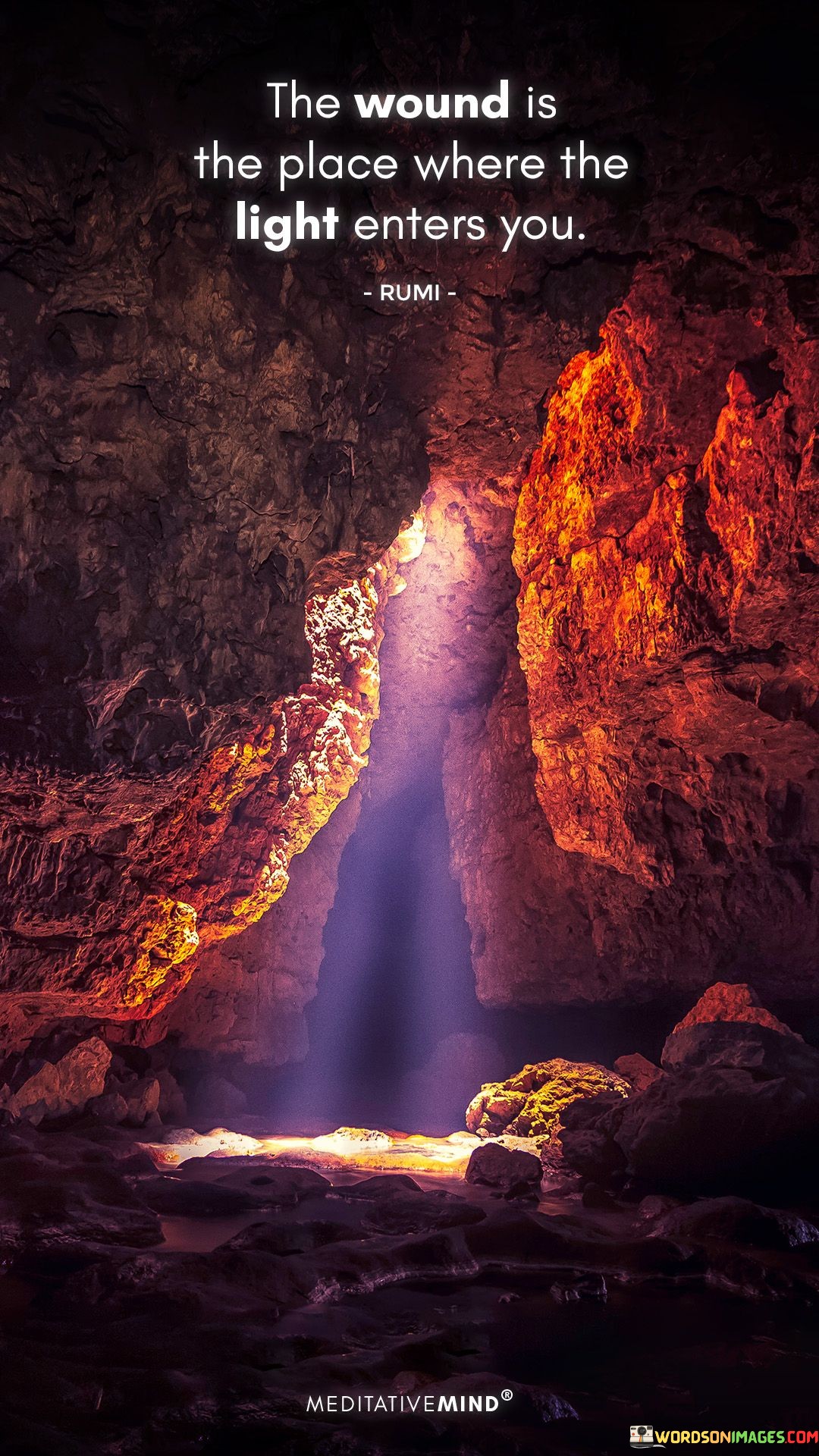 The quote underscores the idea that adversity can bring inner enlightenment. It's a call to find meaning in life's challenges. By facing wounds with resilience and a positive outlook, you can discover your own inner light and emerge stronger and wiser.