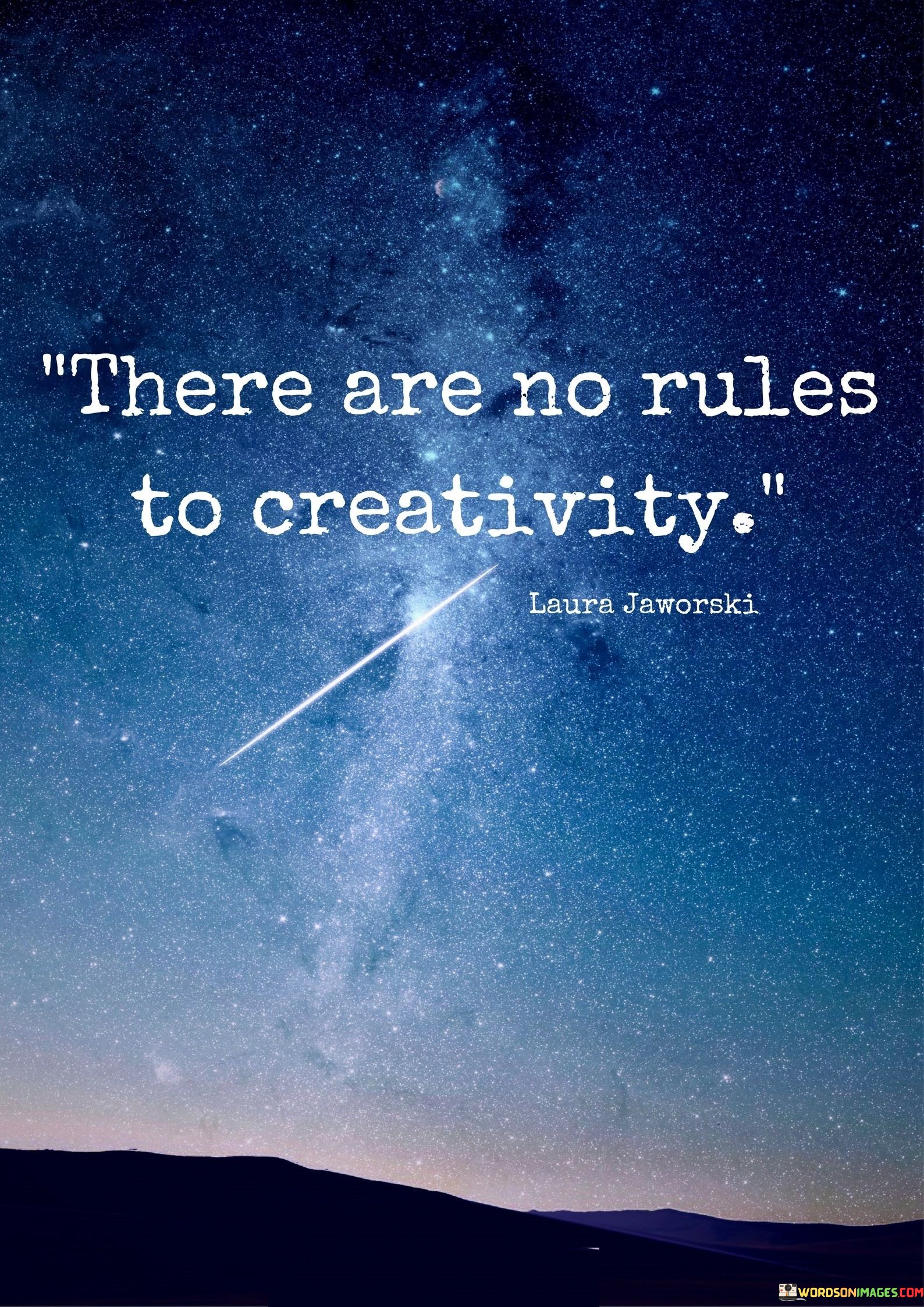 Creativity means coming up with new and cool ideas. This quote is saying that when it comes to being creative, there are no strict rules that you have to follow.
