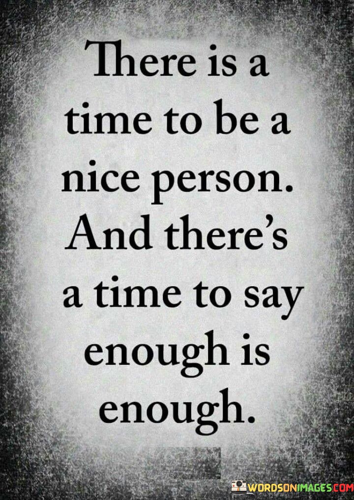 This quote, "there is a time to be a nice person and there's a time to say enough is enough," highlights the importance of balancing kindness and self-respect in one's interactions and relationships.
