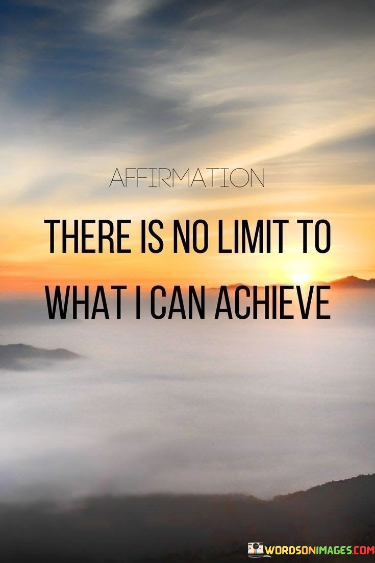 The potential within me knows no bounds, allowing me to reach remarkable accomplishments. This quote emphasizes that my capabilities are limitless, urging me to believe in my ability to succeed. Just like a vast sky that holds endless possibilities, I too can achieve extraordinary things.