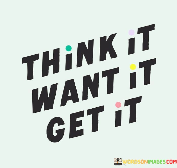 The second part, "Want It," underscores the necessity of passion and desire. It's not just about thinking of something; it's about wanting it deeply and being willing to put in the effort and commitment required to attain it. True desire fuels the motivation to take action.