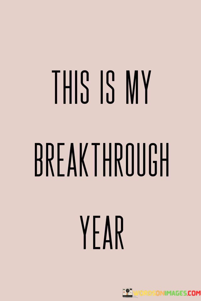 This marks the year of my significant progress. This quote suggests that the current year holds the promise of achieving substantial advancements. It's like standing at the entrance of a tunnel that leads to great accomplishments.