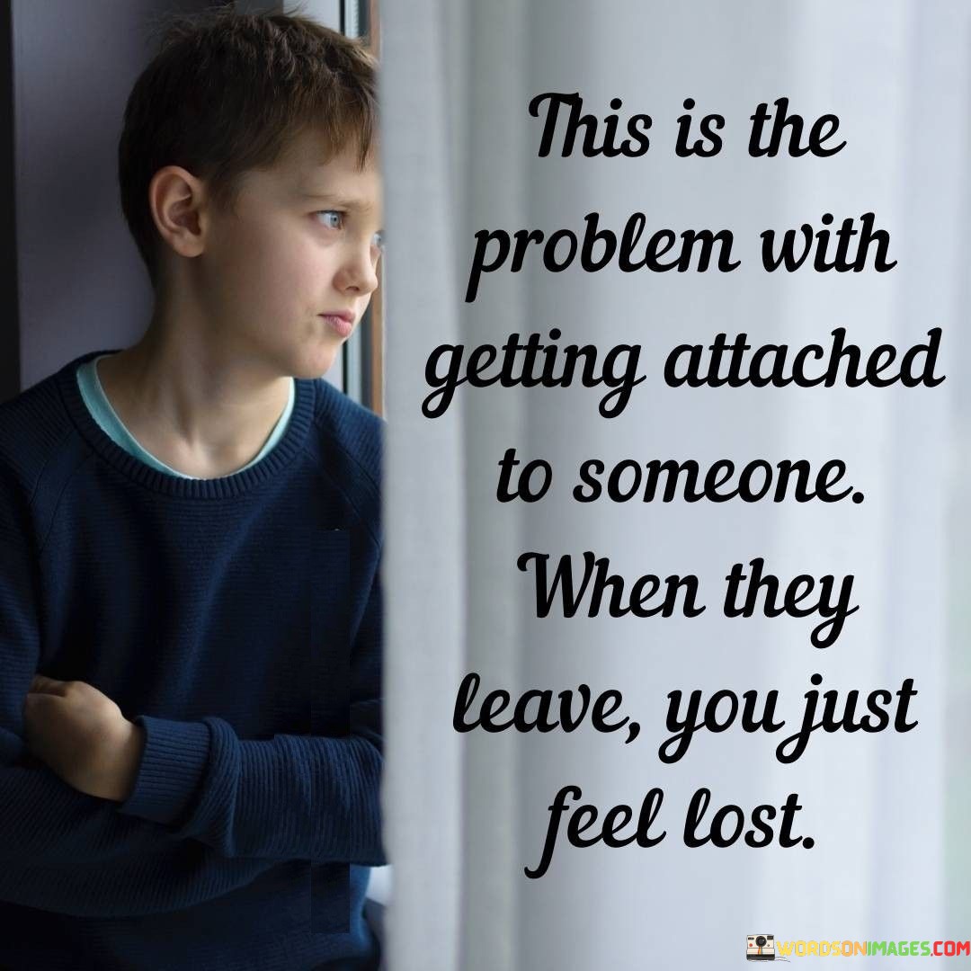 The quote expresses the aftermath of attachment. "Problem with getting attached" alludes to emotional bonding. "When they leave" signifies separation. The quote conveys the emotional emptiness that follows when someone we're attached to departs.