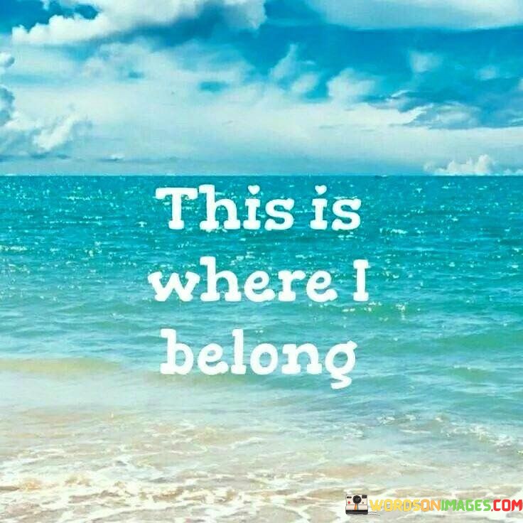 The quote "This Is Where I Belong" means that a person feels like they are in the right place or situation. It's like finding your home or your true calling. When someone says this, they are expressing a strong sense of belonging and contentment with where they are in life.