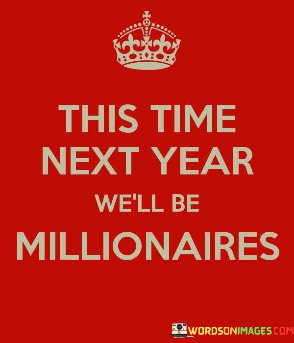Certainly! This phrase expresses a hopeful and ambitious sentiment about the future. In the first paragraph, it means that at this same time next year, the speaker envisions themselves having achieved a significant financial milestone – becoming millionaires.