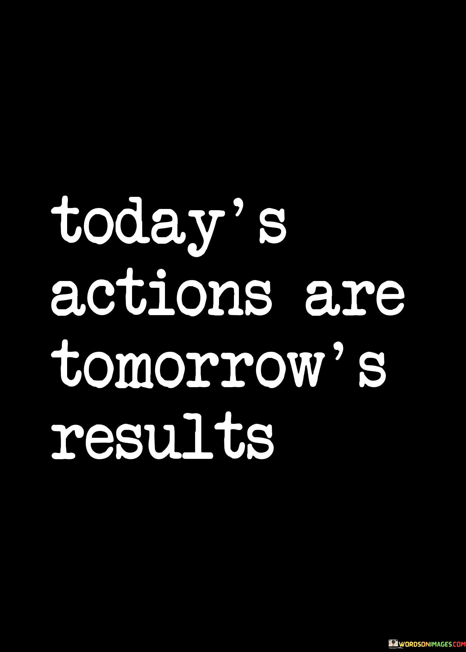 The quote "Today's actions are tomorrow's results" underscores the cause-and-effect relationship between present actions and future outcomes. It highlights the direct impact of choices on future circumstances. This perspective encourages individuals to make intentional decisions and invest effort today to shape a positive and rewarding tomorrow.