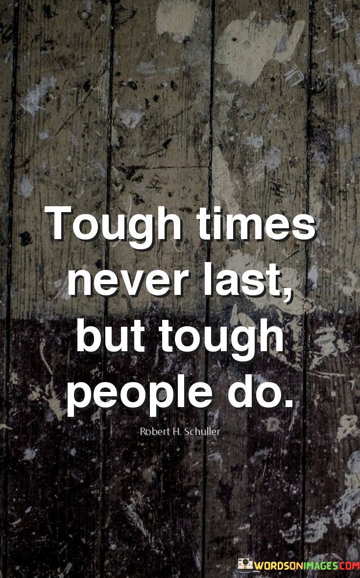 This quote conveys resilience in adversity. Difficult situations are temporary, but strong individuals persevere. It highlights the endurance of tough people in the face of challenges. The quote assures that tough times are fleeting while one's strength remains constant.