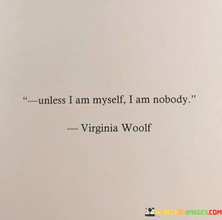 The quote "Unless I Am Myself, I Am Nobody" carries a clear and meaningful message about individuality and self-identity. It suggests that a person's true worth and significance come from being their authentic self. In simpler terms, when you are genuine and true to who you are, that's when you truly exist and matter in this world.
