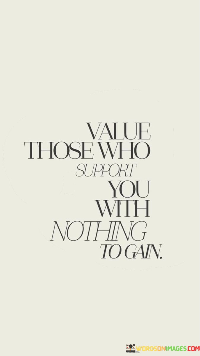 The quote "Value Those Who Support You With Nothing To Gain" reminds us of the importance of appreciating and cherishing the people in our lives who offer their support and help without expecting anything in return. It highlights the significance of genuine and selfless relationships.