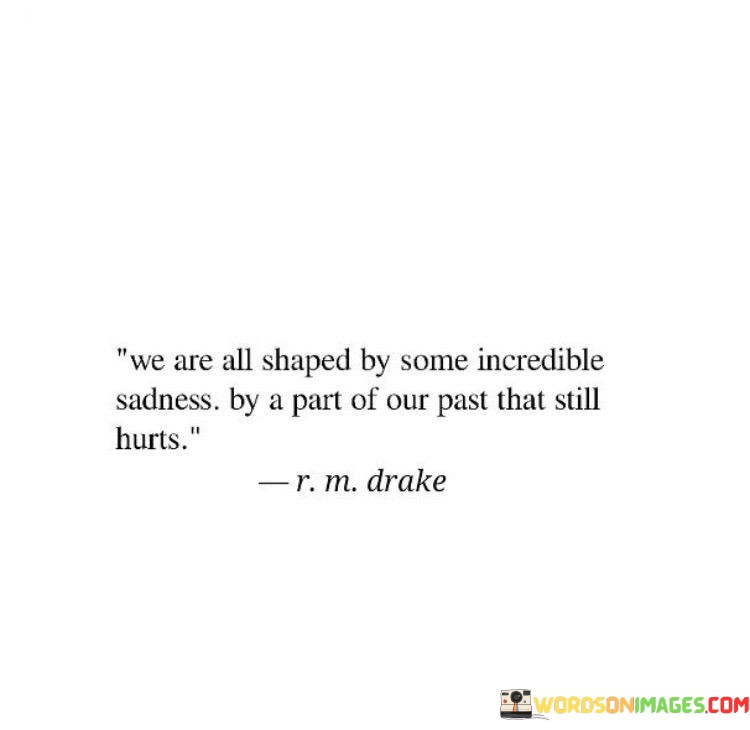 The quote acknowledges the influence of past pain on personal development. "Shaped by incredible sadness" implies lasting impact. "Part of our past that still hurts" alludes to unresolved wounds. The quote conveys the idea that past sorrow has left a lasting imprint.
