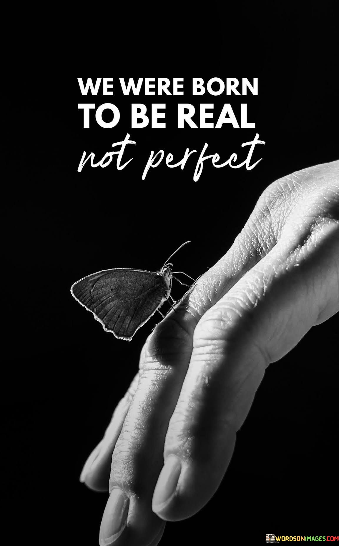 Our purpose is authenticity, not flawlessness. This quote reflects that our true value lies in being genuine. It reminds us to embrace our imperfections, as they make us human and relatable, rather than striving for an unattainable idea of perfection.