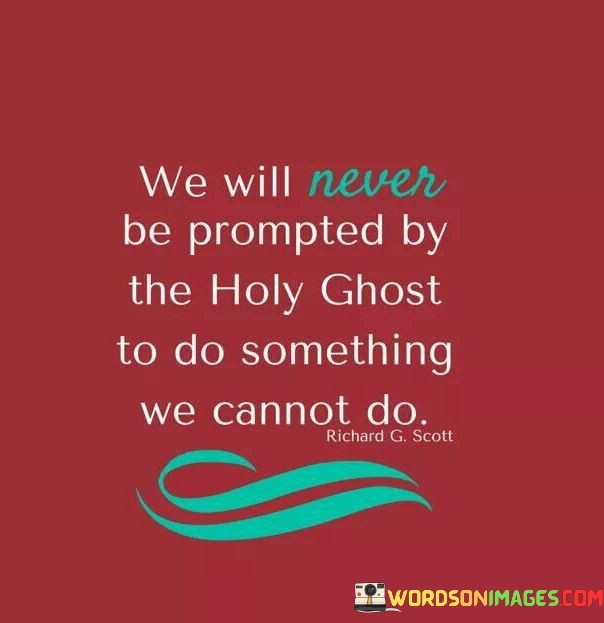 This quote reflects the belief that when individuals receive guidance or prompting from the Holy Ghost, it is within their capabilities to carry out that guidance. It suggests that divine inspiration is aligned with one's abilities and resources.