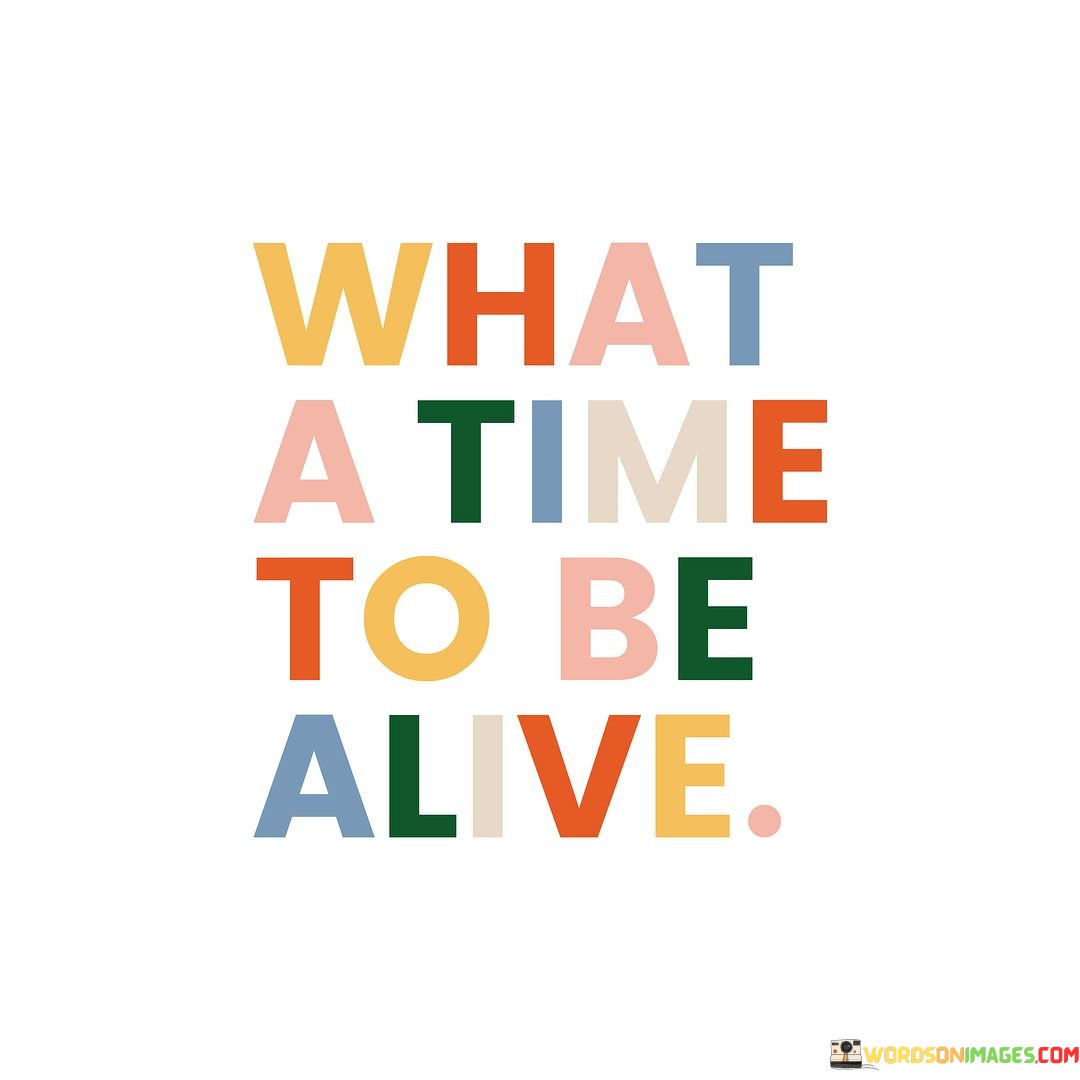 The present moment is truly remarkable. "What a time to be alive" reflects a sense of awe and gratitude for the era we find ourselves in. It's an expression of wonderment at the opportunities, advancements, and experiences available to us in this modern age.