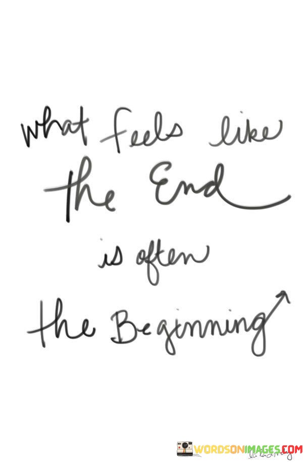 This quote beautifully encapsulates the idea that endings in life often mark the beginning of something new and transformative. It suggests that what may seem like a final chapter or a period of loss can actually be the starting point for fresh opportunities and growth.