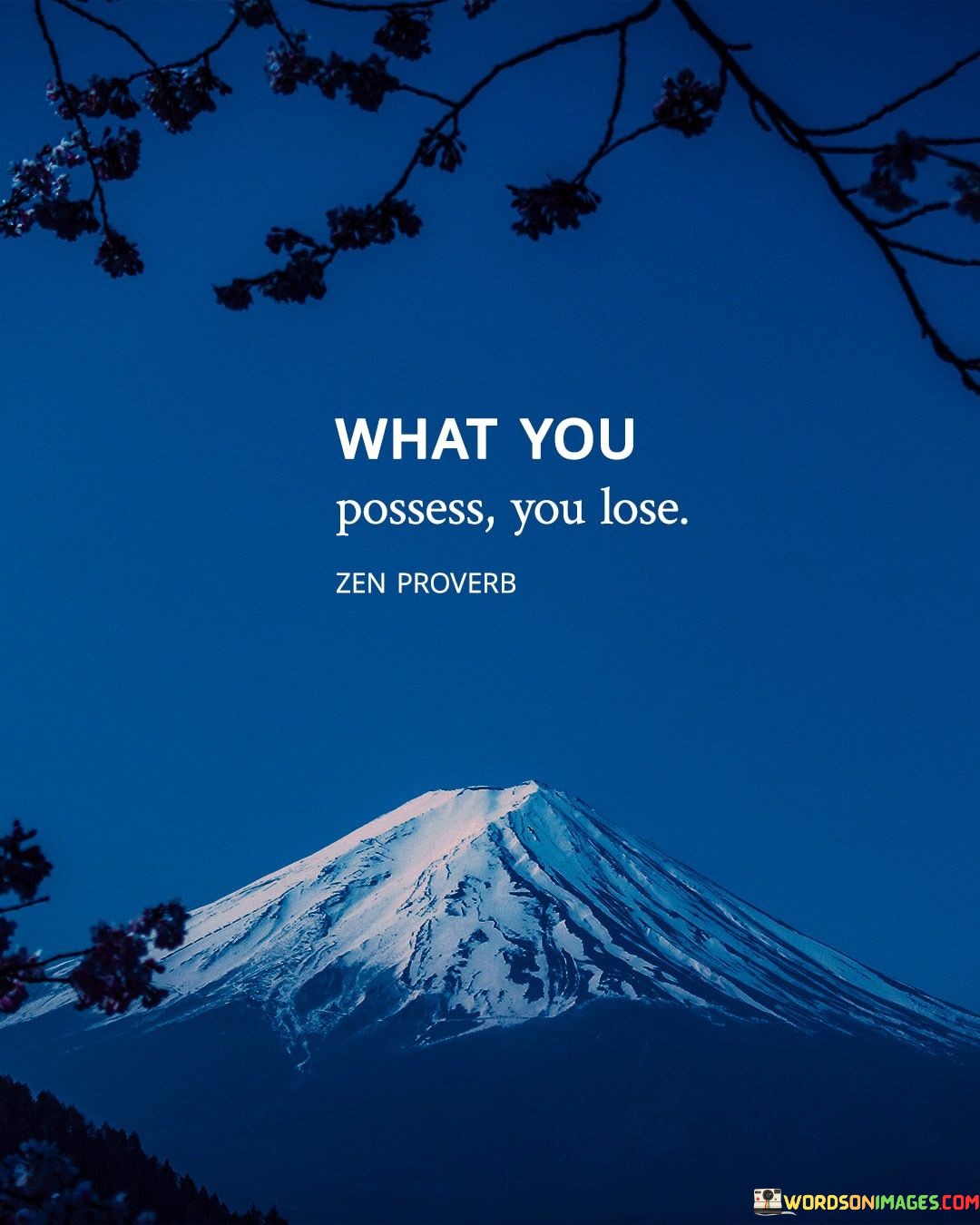 It's a reminder that attachment can lead to loss. When we become overly fixated on what we own or desire, we might not appreciate it fully, and it can slip away. Instead of holding on too tightly, it's wiser to cherish what you have without being possessive, as this can lead to a more lasting sense of contentment.