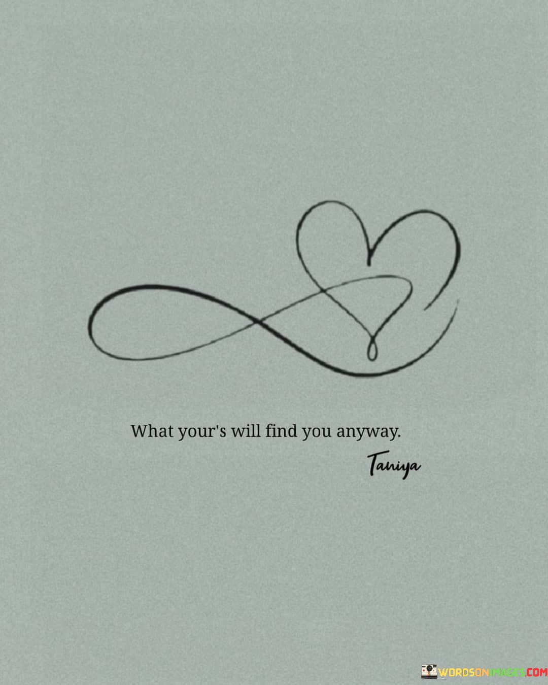 The quote "What's yours will find you anyway" conveys the idea that the things or opportunities meant for you will come to you naturally and without force. In simpler terms, it suggests that you don't always need to chase after what you desire; if it's meant to be, it will come to you in due time.