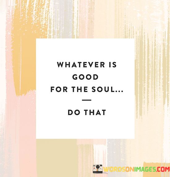 The quote "Whatever Is Good For The Soul Do That" carries a straightforward and profound message about prioritizing actions and choices that bring happiness and inner peace. It suggests that in life, we should focus on activities and decisions that nourish and uplift our inner selves.