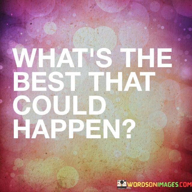 When we adopt the perspective of "What's the best that could happen?" it can inspire us to be more optimistic, proactive, and creative in approaching challenges and opportunities. It encourages us to set higher expectations for ourselves and the outcomes we seek.