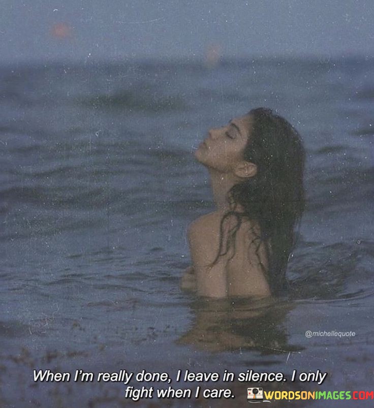Leaving in silence when you're truly done with something is a way of preserving your peace and mental well-being. Instead of prolonging unnecessary conflicts, you choose to disengage gracefully. This approach helps you avoid unnecessary stress and turmoil in your life.