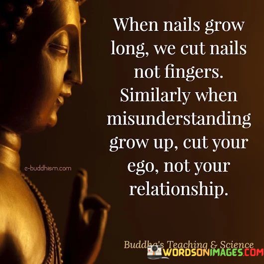 "Similarly, when misunderstandings grow up, cut your ego, not your relationship" suggests that in times of conflict, it is essential to prioritize humility and self-reflection over stubbornness and pride.