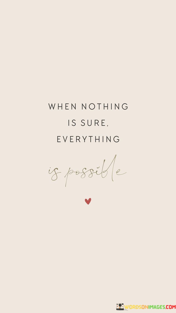 The quote "When nothing is sure, everything is possible" encapsulates the idea that uncertainty can open doors to limitless opportunities and potential. It suggests that in situations where outcomes are unpredictable or unclear, there is a wide range of possibilities waiting to be explored.