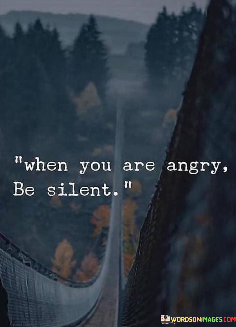 This quote promotes emotional intelligence and self-control. It encourages individuals to manage their anger in a way that avoids unnecessary conflict and preserves relationships. By staying silent when angry, you can avoid making the situation worse and, instead, address the issue with a cooler head once you've had time to process your emotions. It's a reminder that silence can be a powerful tool for emotional self-regulation and conflict resolution.