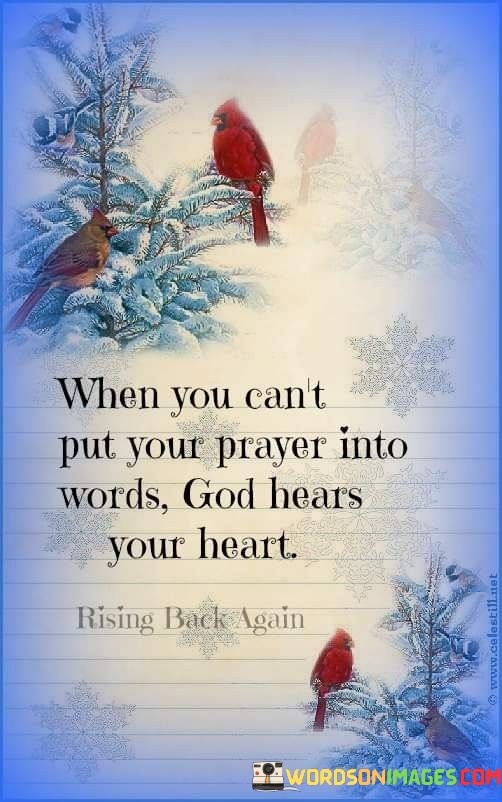 In essence, this quote encourages individuals to have faith that their unspoken prayers and the emotions in their hearts are heard and recognized by God. It underscores the belief in the depth of divine understanding and compassion.