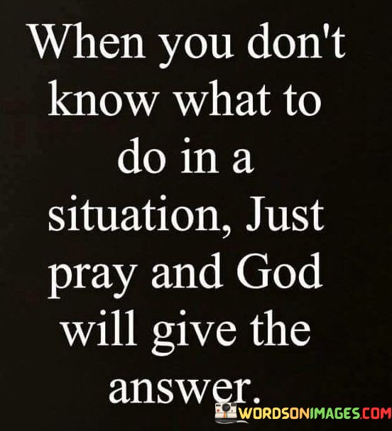 This quote emphasizes the role of prayer as a source of guidance and clarity in times of uncertainty or decision-making. It suggests that when individuals find themselves unsure of what to do in a particular situation, turning to prayer can provide them with answers and direction from God.