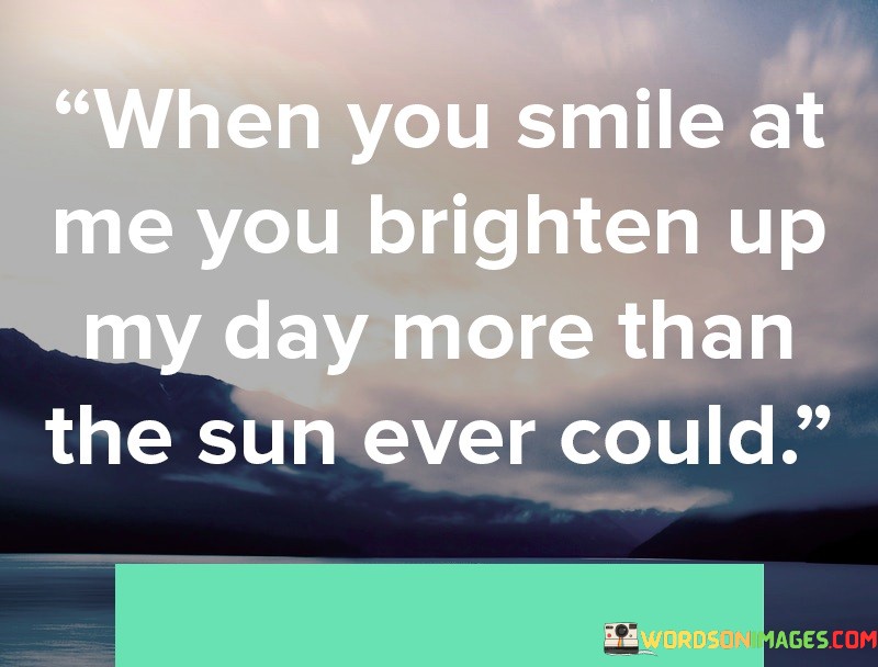 "When you smile at me, you brighten up my day more than the sun ever could." This quote poetically conveys the immense impact and happiness that a person's smile can bring into someone's life.