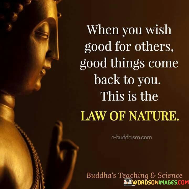 This quote highlights the principle of reciprocity and the power of positive intentions. When we genuinely wish good for others, it creates a positive energy that resonates within the universe. This positive energy has a way of coming back to us in various forms, as the actions we put out into the world tend to influence the experiences and interactions we encounter.