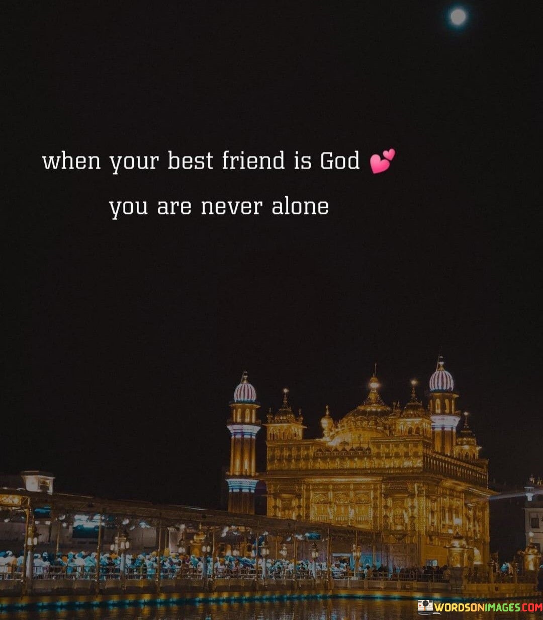 In the final 50-word paragraph, the quote serves as a reminder of the profound companionship that can be found in one's relationship with God. It encourages individuals to cultivate and cherish this spiritual connection, knowing that it provides a sense of never being truly alone. This quote encapsulates the idea that a relationship with God can be an enduring and comforting friendship.