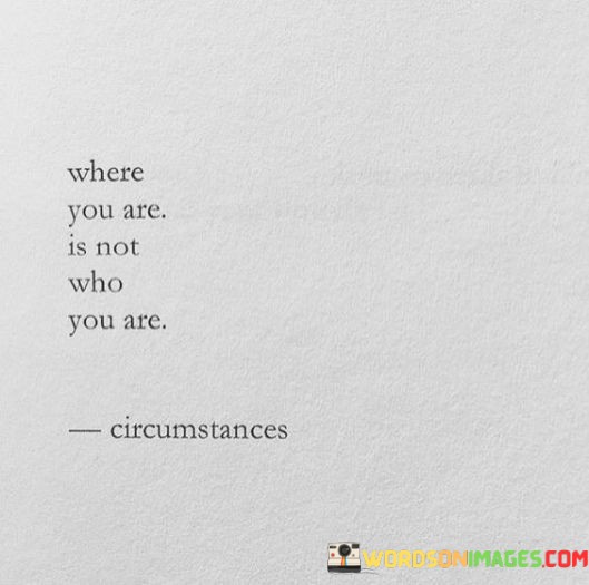 Identity goes deeper. The quote suggests that your character, values, and potential aren't confined to your present situation. It's a reminder that you're not limited by where you are; you can always strive for personal growth and change.