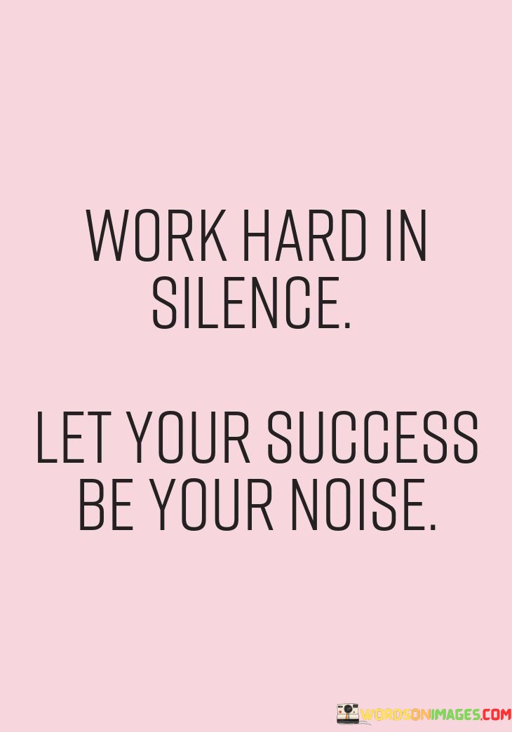 The quote continues with "Let your success be your noise," which encourages individuals to let their accomplishments and the outcomes of their hard work be the primary source of recognition and attention. It implies that true success will naturally draw attention and speak for itself.