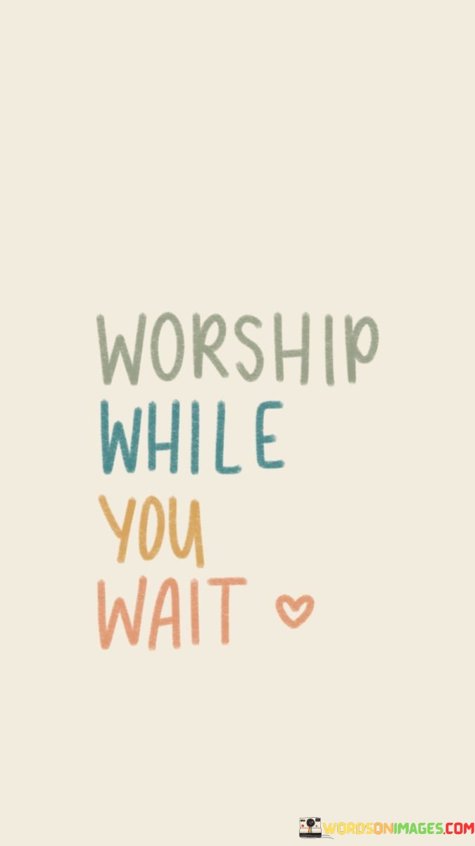 Moreover, "Worship While You Wait" is a call to stay patient and trust the process. It reminds us that life is a journey with many phases, and each phase has its purpose and lessons. By worshipping, in a broader sense, our life's journey, we can find contentment and inner peace, even when we are in the midst of uncertainty or delay. In essence, this quote encourages us to make the most of every moment and find fulfillment in the present, regardless of what lies ahead.