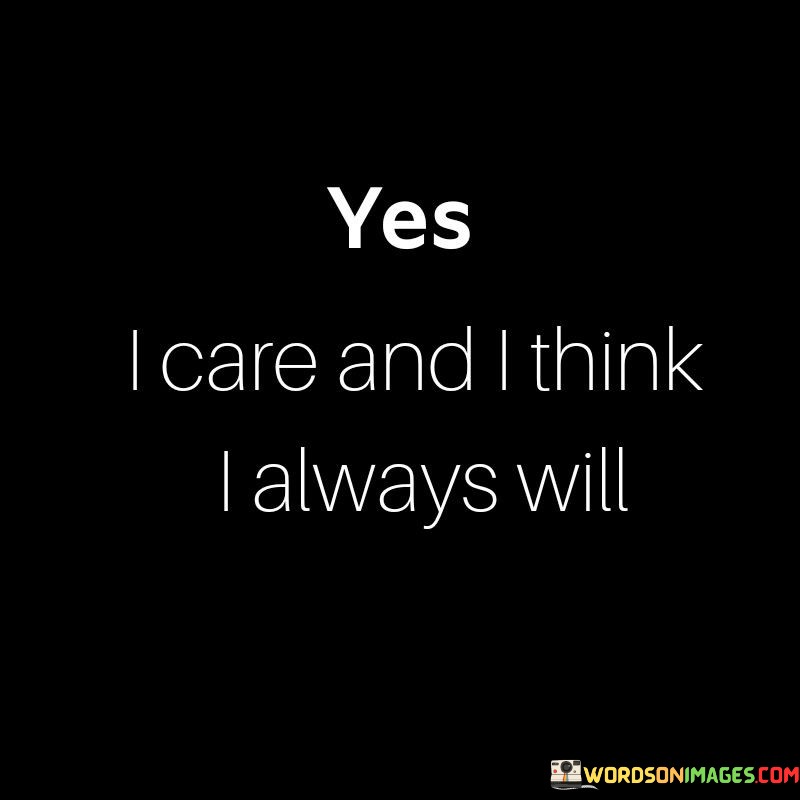 "Yes I Care And I Think I Always will" expresses a deep and unwavering commitment to caring. It's like planting a seed of compassion that continues to grow. This quote signifies a heartfelt dedication to someone or something, and the word "always" emphasizes the enduring nature of this care.