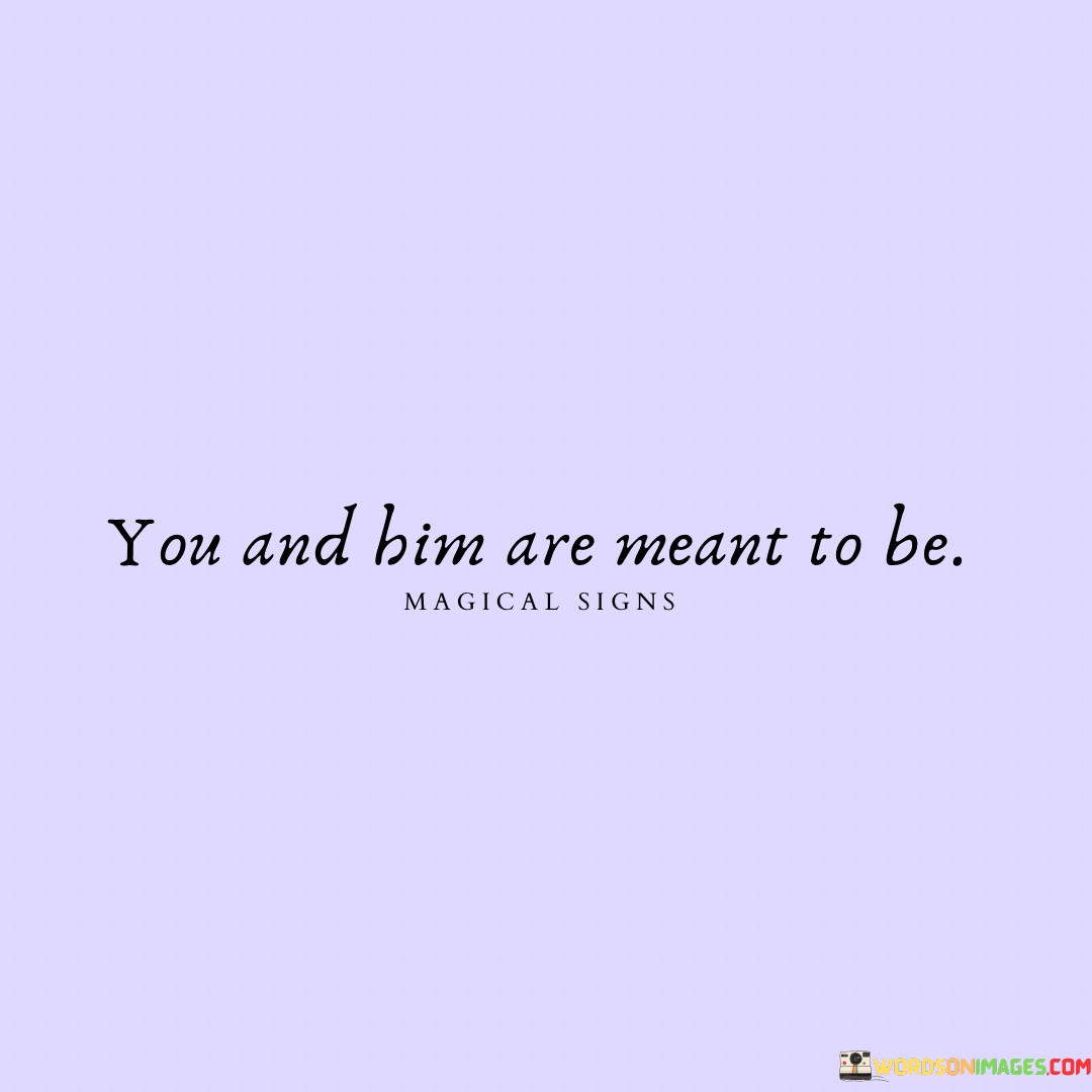 The quote "You and him are meant to be" suggests that there is a special and destined connection between two people. In simpler terms, it implies that the bond between you and the other person is not just a coincidence but is something that fate or destiny has brought together.