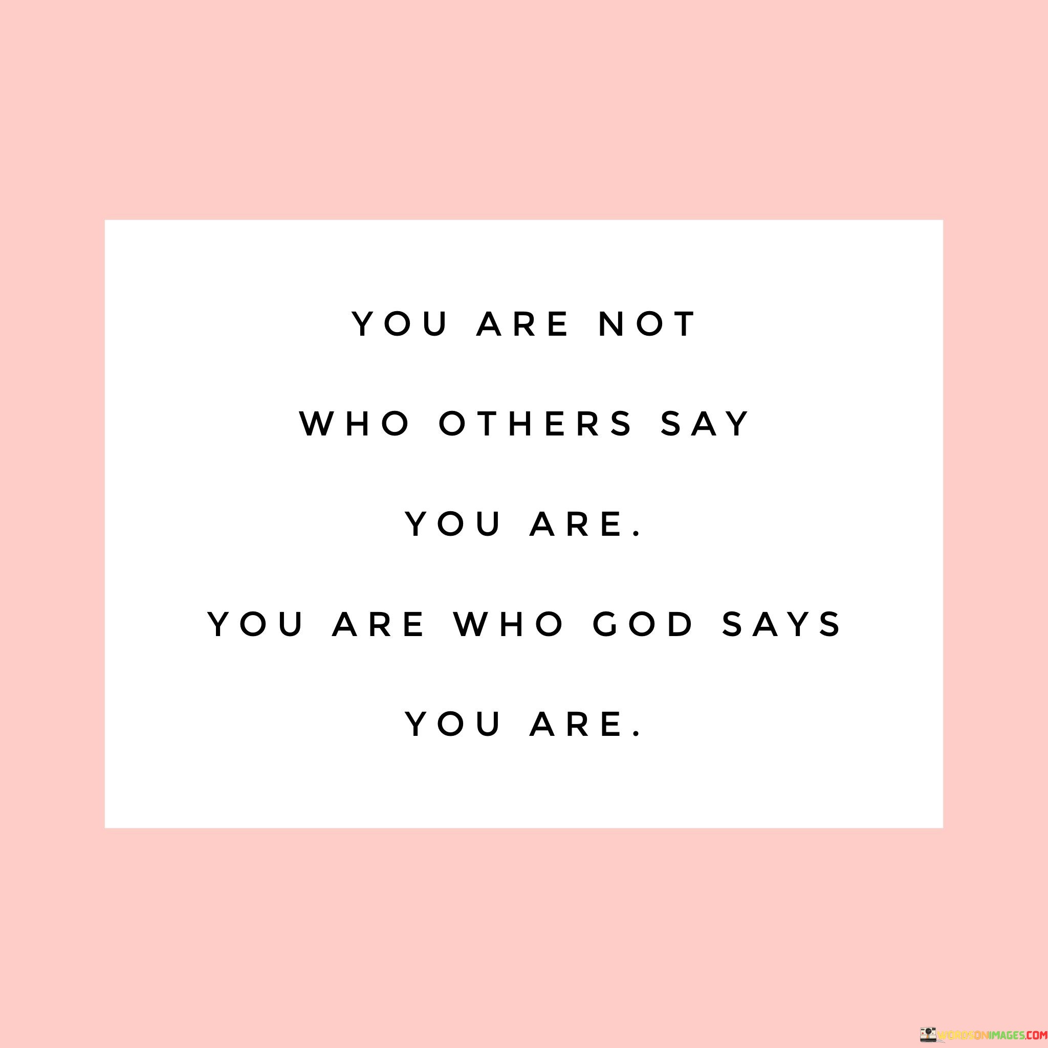 This quote emphasizes the idea that one's identity is not defined by the opinions or judgments of others, but rather by a higher purpose or divine perspective. It suggests that God's perception of an individual's worth and potential holds more significance than societal expectations or criticisms.
