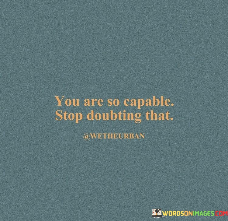 This quote emphasizes your abilities; don't question them. You possess skills, like hidden treasures. Doubt undermines potential. Trust in yourself, like taking steps on a sturdy bridge. Confidence unlocks doors. Believe in your capability; it's your strength to embrace.