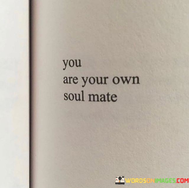 The quote "You Are Your Own Soul Mate" carries a profound message about self-love and self-acceptance. It suggests that the most important relationship we can have is with ourselves. Rather than seeking validation or completeness from external sources, it encourages us to look inward and recognize our own worth.