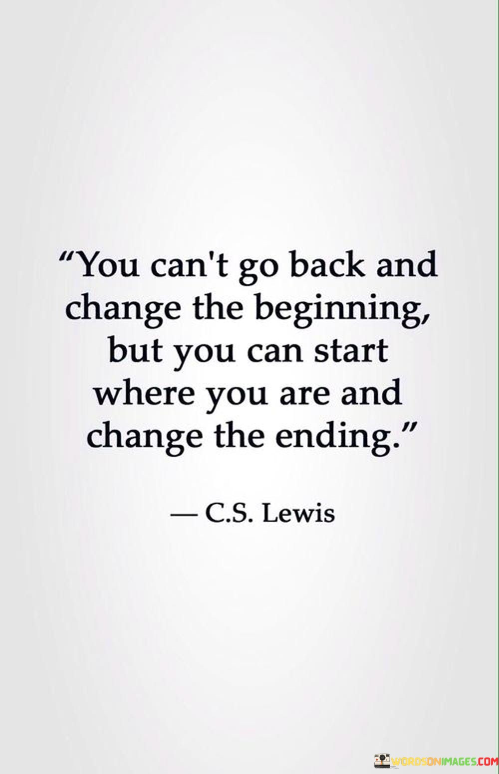 This quote conveys that while we can't alter our past, we have the power to influence our future by taking positive actions in the present. It suggests that even though we can't rewrite history, we can shape the outcome of our journey from this point forward.