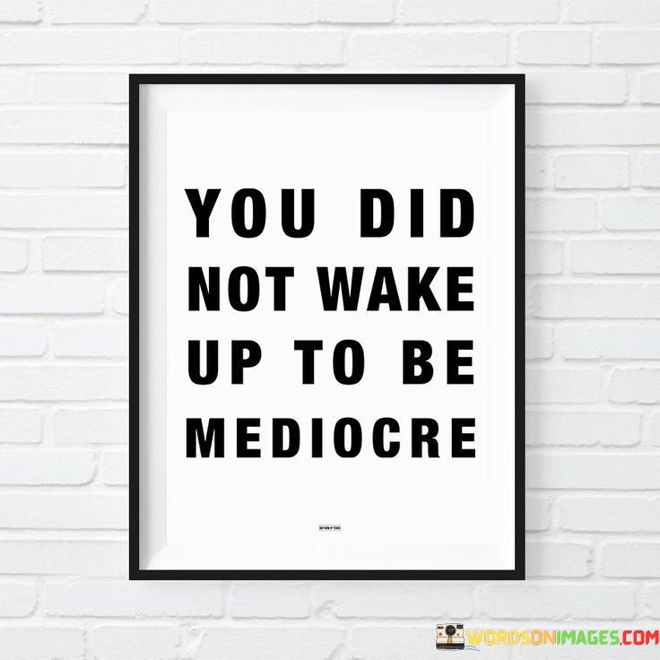 This quote reminds us that we all have potential beyond average. Waking up signifies a new chance to achieve greatness. Mediocrity limits growth, while aiming higher sparks progress. The quote motivates us to embrace our unique abilities and strive for excellence in whatever we pursue.