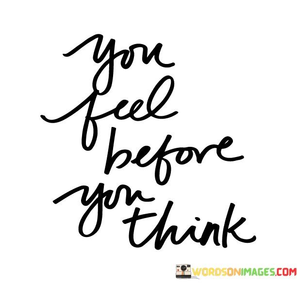 The quote highlights the rapid and intuitive nature of emotions. When we encounter a situation, our initial emotional reaction tends to be immediate and automatic. These emotional responses can shape our perceptions and guide our subsequent thoughts and decision-making processes.
