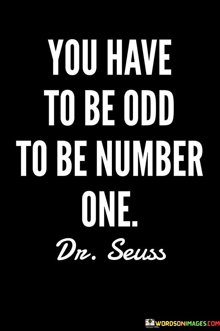 This quote encourages individuals to embrace their uniqueness and quirks, suggesting that standing out from the crowd is often a prerequisite for achieving greatness. It implies that those who become "number one" or excel in their fields are typically the ones who dare to be different and don't conform to societal norms or expectations.